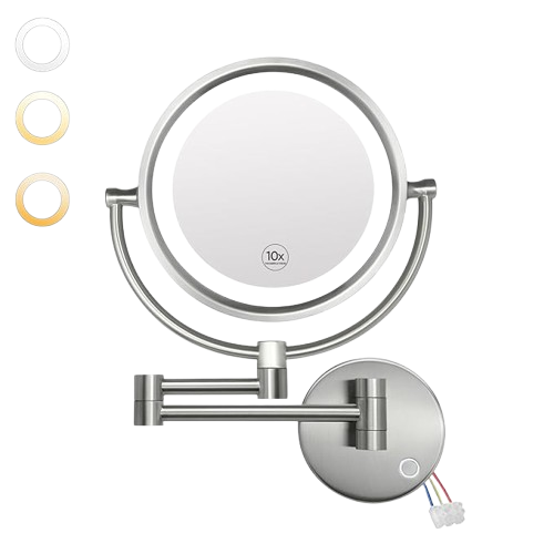 - Extendable Arm & Foldable Design – Effortlessly adjust the mirror for the ideal angle and fold it flat against the wall to save space when not in use.